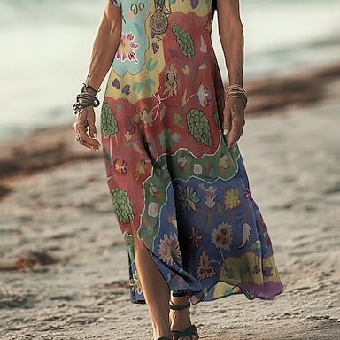 Damen Minikleid A Linie Kleid Halterkleid Urlaub Lässig Boho Outdoor Ausgehen Strand Normale Passform Blumen Ärmellos Neckholder Gelb Rote Blau Grün Sommer
