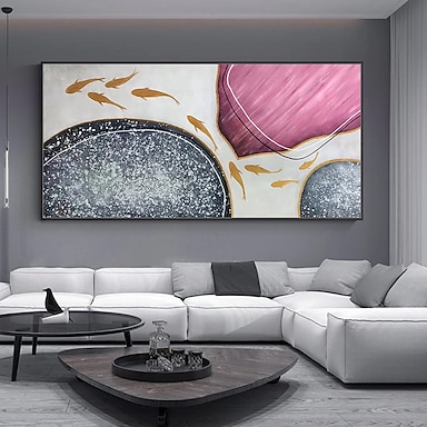 Buntes Koi-Fisch-Ölgemälde auf Leinwand, handgemaltes Original-Ozean-Meereslandschaftsgemälde, abstrakte Naturlandschaft, Wohnzimmer-Dekor-Wandkunst