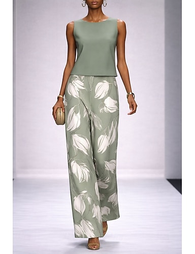 Damen Hosen-Sets Ärmellos Rundhalsausschnitt Blumen Grafik Elegant Urlaub Täglich Lässig Täglich Formell Blau Rosa Grün Frühling & Sommer Normale Passform Lässiger Schnitt