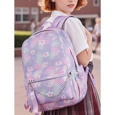 Schulrucksack für Mädchen mit Blumenmuster – leichte, gesteppte Büchertasche mit Kettendekor und wasserabweisendem Stoff für Teenager und die Mittelstufe