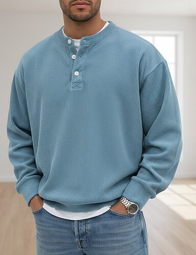 Herren Cordhemd Henley Hemd T-Shirt Langarm Einfarbig Einfach Texture Mode Designer Lässig Tasche Knöpfe Warm Henley Lässig Täglich Outdoor Sommer Herbst Winter Hellblau Dunkelrot Violett Henley