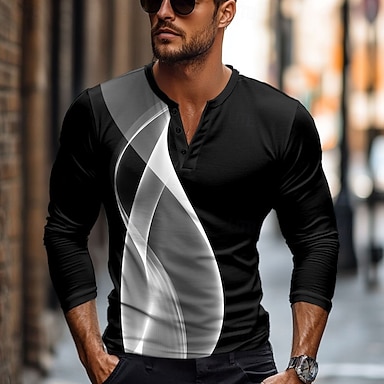 Herren Grafik Geometrisches Muster Henley Hemd Langarm Mode Niedlich Täglich Lässig Ferien Ausgehen Frühling & Herbst Schwarz Henley Henley T-Shirt