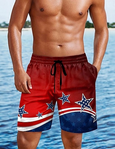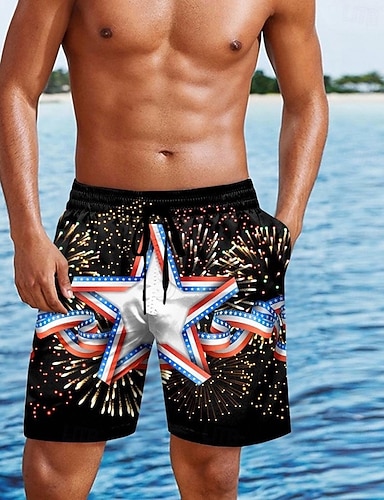 Herren Optische Täuschung Flamme Neonleuchten Badehosen Badeshorts Boardshorts Mittlere Taille Modisch lässig Outdoor Urlaub Alltagskleidung Seitentaschen Netzfutter Elastischer Kordelzug in der
