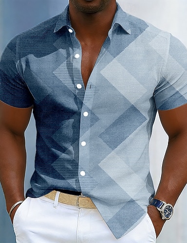 Herren Geometrisch Abstrakte Kunst Hemd Sommerhemd Knopfhemd Kurzarm Modisch lässig Outdoor Urlaub Alltagskleidung Sommer Frühling Umlegekragen 3D-Druck Hemden mit Kragen Eine Tasche vorne Blau