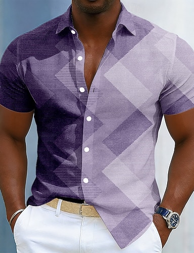 Herren Geometrisch Farbverlauf Abstrakte Kunst Hemd Knopfhemd Langarm Modisch lässig Täglich Outdoor Streetwear Frühling Herbst Umlegekragen 3D-Druck Leinenähnliches Hemd Blau Purpur Khaki Grau
