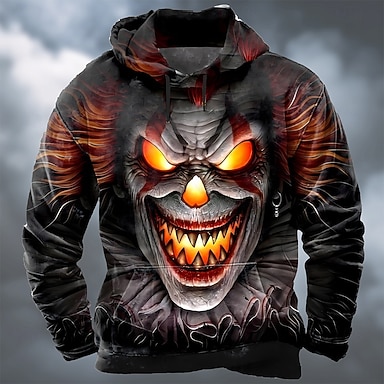 Herren Gruseliger Clown 3D-Druck Clownsmaske Kapuzensweatshirt Pullover Punk Übertrieben Gotisch Lässig Langarm Rundhalsausschnitt Mit Kapuze Streetwear Club Purpur Orange Grün Kordelzug Herbst Winter