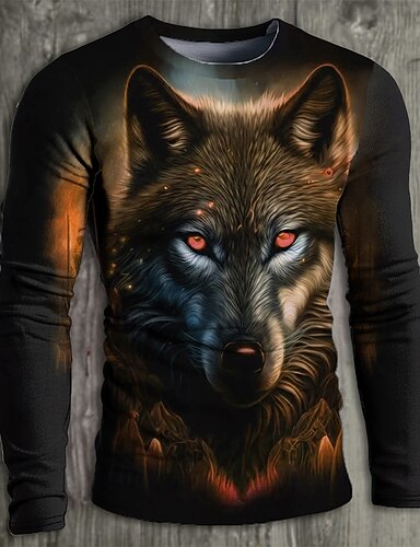 Jungen 3D Grafik Tiermotiv Pferd T-Shirt Langarm Frühling Herbst Mode Basic Kinder 4-12 Jahre Rundhalsausschnitt Outdoor Lässig Täglich Normale Passform
