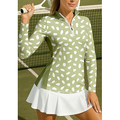 Damen Geometrisch Kreis Punkt Sporthemd Golf-Poloshirt Tennis Shirt Tennis-T-Shirt Langarm Reißverschluss Blumen UPF50+ UV-beständig Hohe Elastizität Feuchtigkeitsableitend Atmungsaktiv Tennis