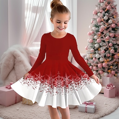 Mädchen' 3D Weihnachtsbaum Schneeflocke Kleid Schneeflockenkleid Langarm 3D-Druck Herbst Winter Urlaub Sport & Natur Täglich Kuschelig Brautkleider schlicht Schön kinderkleidung 3-12 Jahre Casual