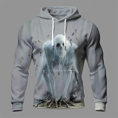 Halloween Herren Monster Kapuzensweatshirt Mode Täglich Lässig Langarm Mit Kapuze Urlaub Party Streetwear Festival Grau Kordelzug Tasche Drucken Herbst Winter Designer S M L XL 2XL 3XL