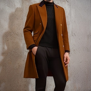 Herren Mantel Trenchcoat Langer Trenchcoat Urlaub Täglich Herbst Winter Polyester Thermowarm Winddicht Oberbekleidung Bekleidung Mode Klassisch Einfach Tasche Revers Doppelreihig