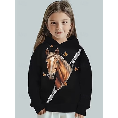 Mädchen 3D Grafik Tiermotiv Pferd Kapuzensweatshirt Pullover Langarm 3D-Druck Frühling Herbst Sport Mode Streetwear Kinder 4-12 Jahre Mit Kapuze Outdoor Lässig Täglich Normale Passform