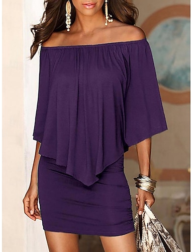 Damen Minikleid Freizeitkleid Etui-Kleid Chiffonkleid Mode Modern Täglich Strand Wochenende Normale Passform Einfach Langarm Schulterfrei Weiß Wein Rote Purpur Sommer Frühling Herbst