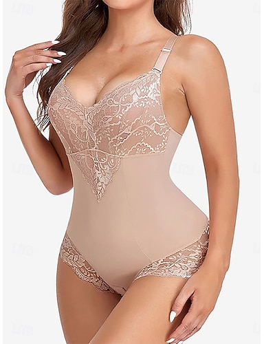 Damen Formende Unterwäsche Onesie Mode Sexy Einfarbig Spitze Patchwork Heim Urlaub Straße Ärmellos V Ausschnitt Schwarz Weiß Rosa Sommer Frühling Herbst Normale Passform