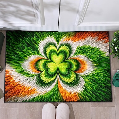 Fußmatte zum St. Patrick's Day mit 2D-Flachdruck, strahlendem vierblättrigem Kleeblatt-Design in Grün-, Orange- und Weißtönen – perfekt für festliche Dekorationen.
