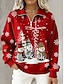 Damen Pullover Sweatshirt Schneemann Schneeflocke Lässig Langarm Halber Reißverschluss Normale Oberteile Alltagskleidung Lässig Ferien Patchwork Schwarz Rote Herbst Winter