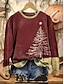 Damen Pullover Sweatshirt Grafik Weihnachtsbaum Lässig Langarm Rundhalsausschnitt Normale Oberteile Straße Alltagskleidung Lässig Weinrot Grün Herbst Winter