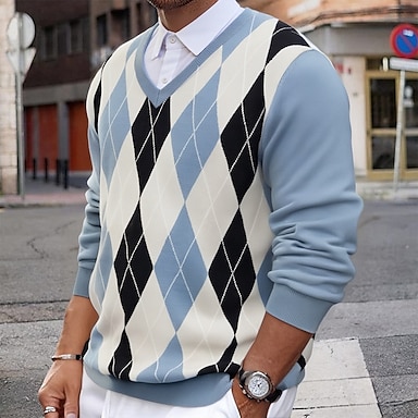 Herren Pullover Wollpullover Gerippt Stricken Abgeschnitten Gestrickt Einfarbig V Ausschnitt warm halten Moderne zeitgenössische Weihnachten Arbeit Bekleidung Herbst Winter Blau Kamel S M L