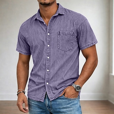 Herren Hemd Freizeithemd Knopfhemd Hemd aus 100 % Baumwolle in Säurewaschung Acid-Wash-Shirt Schwarz Rosa Marineblau Purpur Grün Kurzarm Einfach Hemdkragen Lässig Täglich Bekleidung Elegant Mode