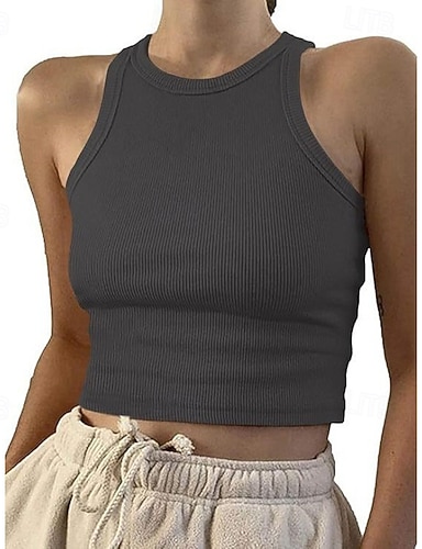 Damen T Shirt Tank Top Einfach Klassisch Lässig Ärmellos Rundhalsausschnitt Crop Tops Täglich Ausgehen Wochenende Weiß Rote Hellgrau Dunkelgray Beige Sommer Frühling