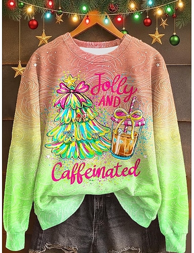 Weihnachten Damen Pullover Sweatshirt Grafik Baum Buchstabe Lässig Langarm Crew Neck Reguläre Tops Street Lässiger Holiday Druck Schwarz Pink Rot Grün Grau Frühling Herbst Winter