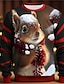 Weihnachten Herren Grafik Mit Tiermuster Eichhörnchen Pullover Mode Niedlich Streetwear Lässig Rundhalsausschnitt Ausgehen Festival Schwarz 3D-Druck Frühling Herbst Designer S M L XL 2XL 3XL