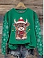 Damen Pullover Sweatshirts Rentier Mode Streetwear Klassisch Langarm Rundhalsausschnitt Rundhals Normale Oberteile Alltagskleidung Lässig Ferien Druck Grün Frühling Herbst Winter
