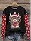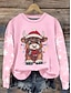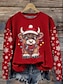 Damen Sweatshirts Grafik Kuh Weihnachten Warm Klassisch Lässig Langarm Rundhalsausschnitt Normale Oberteile Straße Alltagskleidung Lässig Druck Schwarz Rosa Rote Grün Frühling Herbst Winter