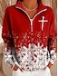 Damen Pullover Sweatshirt Grafik Schneeflocke Lässig Langarm Halber Reißverschluss Normale Oberteile Alltagskleidung Lässig Sport Rote Blau Purpur Grün Herbst Winter