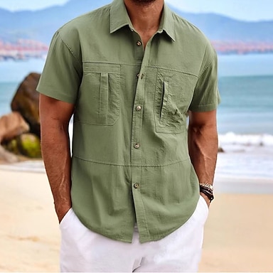 Herren Hemd Freizeithemd Cargohemd Hellgelb Schwarz Grün Kaki Kaffee Kurzarm Einfach Hemdkragen Lässig Täglich Knöpfe Bekleidung Urlaub Mode Lässig