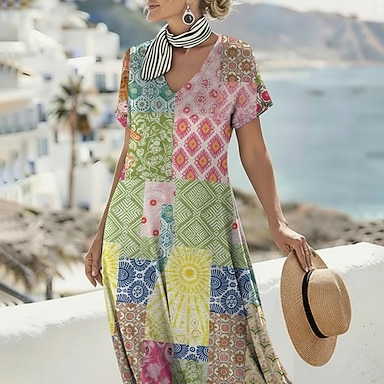 Übergrößenkleid Mutter der Braut Kurvenkleid Elegantes V-Ausschnitt Bodenlang Spitze Kurzarm mit Spitze