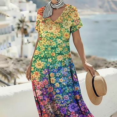 A-Linie Bodenlang Abendkleid Ballkleid Festliche Kleidung Elegant seidig Kurzarm Rundhalsausschnitt Hochzeit Formell Tasche Satin mit Blumenmuster
