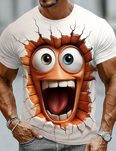 Herren Optische Täuschung 3D Lustige Emotes T Shirt Kurzarm T-Shirt 3D-Druck Rundhalsausschnitt Hemd Übertrieben Designer Täglich Club Party Blau Weiß Orange Sommer Frühling Ganzjahres Bekleidung S M