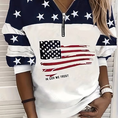 Amerikanischer Unabhängigkeitstag Damen T Shirt Druck Grafik Flagge Stilvoll Klassisch Lässig Langarm Rundhalsausschnitt Normale Oberteile Täglich Blau Weiß Rosa Rote Beige Sommer Frühling