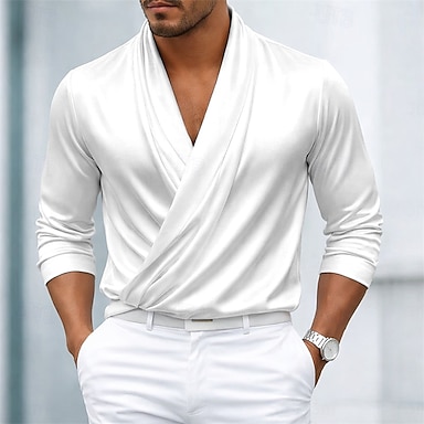 Herren Hemd Seidenartig Satinhemd Freizeithemd Einfach Täglich Urlaub Schwarz Wein Marineblau Gold Langarm Wasserfallausschnitt Frühling Frühling & Herbst Bekleidung Gerafft