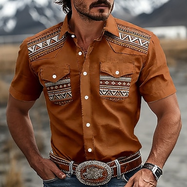 Herren Geometrisch Ethnisch Westernhemd Arbeitshemden Cowboy-Shirt Kurzarm Western Vintage-Retro Lässig Outdoor Arbeitskleidung Sommer Frühling Umlegekragen 3D-Druck Zwei Fronttaschen Hemden mit
