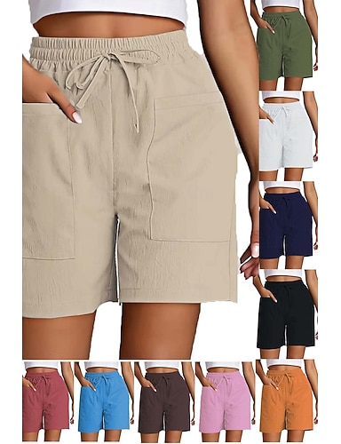 Damen Bermudashorts Chinos Shorts Stoffhosen Urlaub Basic Komfort Kurz Hohe Taille Einfach Kordelzug Komfort Dehnbar Täglich Alltagstauglich Blau Karminrot Aprikose Schwarz Sommer Frühling Normale