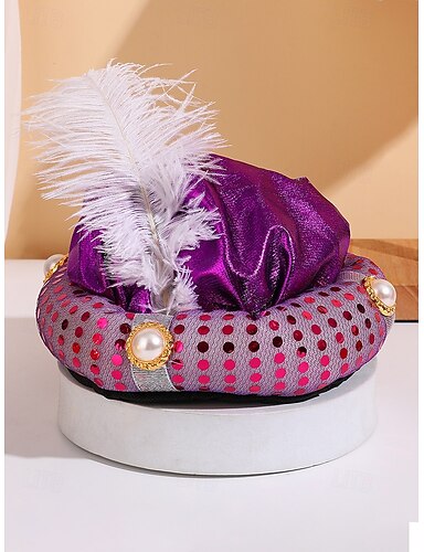 Herren Karneval Prinz Pailletten-Turban-Hut | Mehrere Farben Polyester Feder- und Perlenakzente | Ideal für Maskerade Halloween und festliche Veranstaltungen