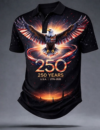 Herren 250. Jahrestag des Unabhängigkeitstages der USA am 4. Juli Große Augen US Flagge Hemd Sommerhemd Knopfhemd Kurzarm Patriotisch Outdoor Ferien Sommer Frühling Umlegekragen 3D-Druck Hemden mit