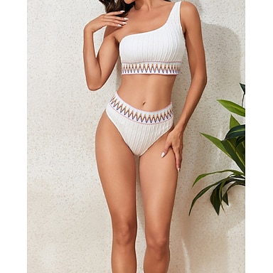 Damen Regulär Surfing Tankinis & Bikinis Badeanzug 2 Teile Geometrisch Offener Rücken UV Schutz Elastisch Ärmellos Bademode Surfen Tauchen Schwimmen Sommer