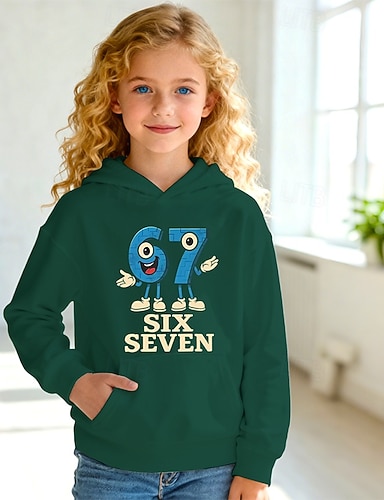 Unisex 3D Grafik Fußball Lustiger Slang 67 Kapuzensweatshirt Pullover Langarm 3D-Druck Frühling Herbst Sport Mode Streetwear Kinder 4-12 Jahre Mit Kapuze Lässig Täglich Outdoor Normale Passform