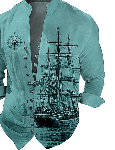 Herren Tarnung Westernhemd Cowboy-Shirt Langarm Vintage Westernstil Tribal Outdoor Urlaub Pferderennen Frühling & Sommer Umlegekragen Druck Button-Down Marineblau Grün