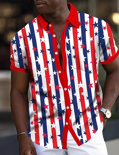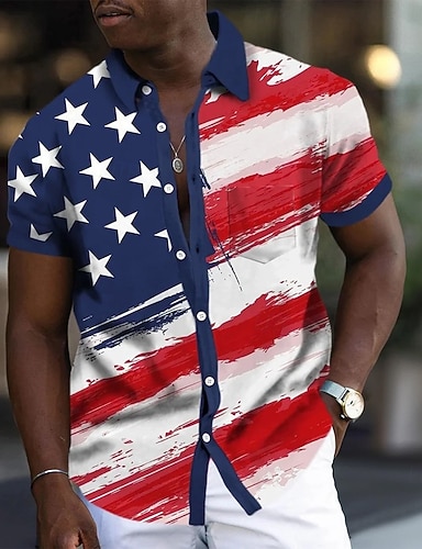 Unabhängigkeitstag Herren amerikanische US-Flagge patriotisches Viertes Juli Hemd Sommerhemd Knopfhemd Kurzarm Mode casual Outdoor Urlaub Alltagskleidung Sommer Umgeschlagen