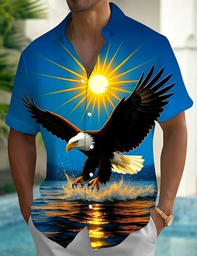 Herren Sonne 250. Jahrestag des Unabhängigkeitstages der USA am 4. Juli Adler Hemd Sommerhemd Knopfhemd Kurzarm Patriotisch Outdoor Ferien Sommer Frühling Umlegekragen 3D-Druck Hemden mit Kragen Eine