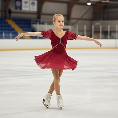 Eiskunstlaufkleid Damen Mädchen Eislaufen Kleider Rot Weiß Schwarz Weiß Daumenloch Halo-Färbung Gitter Spandex elastisch Ausbildung Praxis Professionell Eiskunstlaufkleidung warm Klassisch Kristalle