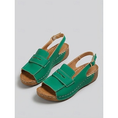 Bequeme, grüne Damensandalen mit Blumenmuster – leichte Keilsandalen für Spaziergänge, Gartenpartys, Reisen und den Alltag