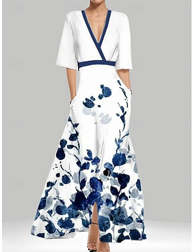 Damen Midikleid Wickelkleid Blumenkleid Mode Modern Outdoor Urlaub Ausgehen Normale Passform Blumen Kurzarm V Ausschnitt Blau Rote Königsblau Grün Sommer Frühling