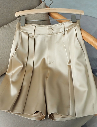 Damen Bermudashorts Chinos Faltenhose Urlaub Streetwear Lässig Kurz Mittlere Taillenlinie Einfach Tasche Atmungsaktiv Mikroelastisch Täglich Outdoor Arbeit Schwarz Weiß Champagner Sommer Frühling