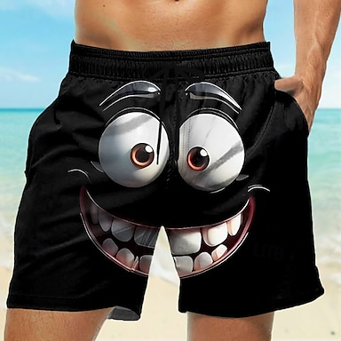 Herren 3D Zeichentrick Lächelndes Gesicht Große Augen Badehosen Badeshorts Boardshorts Mittlere Taille Lustig Outdoor Urlaub Alltagskleidung Seitentaschen Netzfutter Elastischer Kordelzug in der