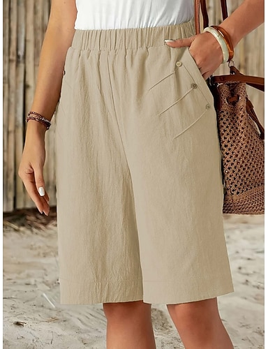 Damen Jogginghose Chinos Shorts Urlaub Mode Streetwear Knielang Hohe Taille Einfach Tasche Elastischer Bund Bequem Komfort Weich Dehnbar Outdoor Straße Blau Dunkelgrau Schwarz Weiß Sommer Frühling